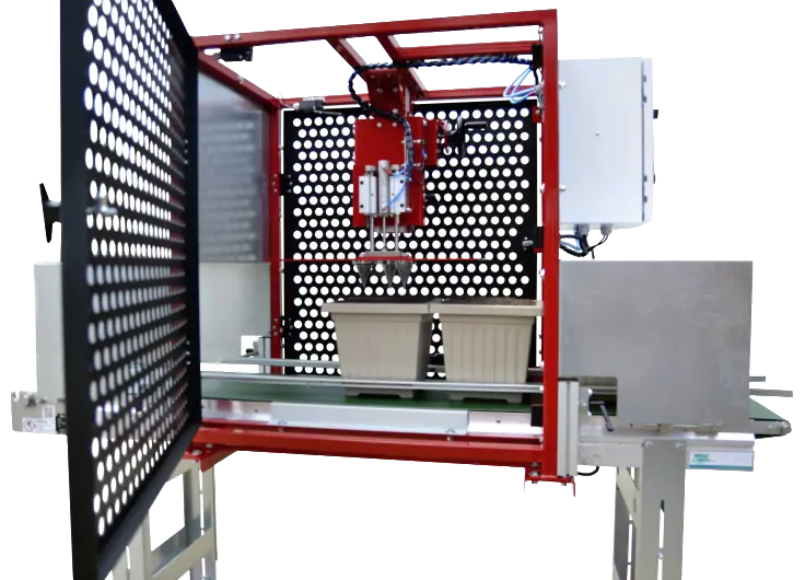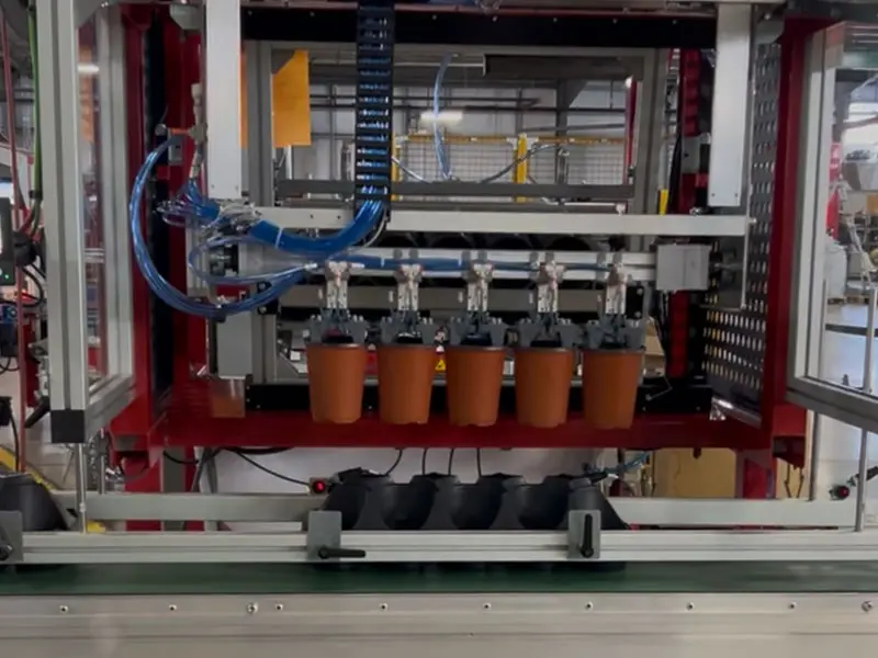 Automate pot dispensing with the PD-X1, a high-speed system that separates, grips, and places pots into carrier trays with precision. Servo-controlled gantry and vacuum gripper assembly ensure accurate, consistent placement at up to 400 trays per hour.