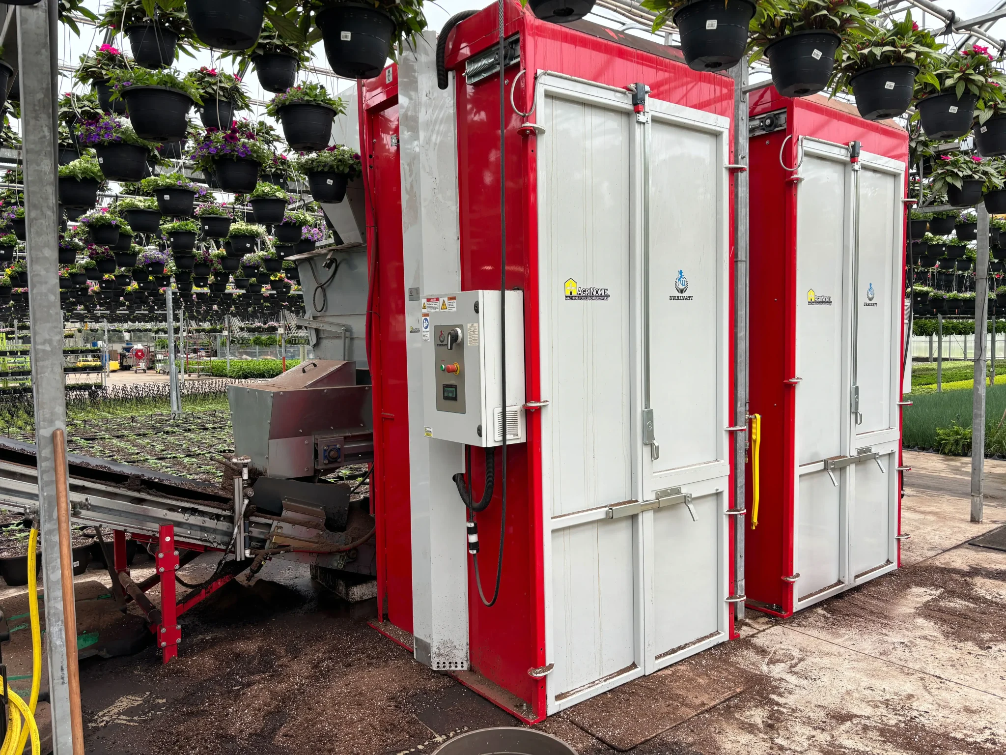 The Sub-Irrigator provides the advantages of ebb-and-flow irrigation in an in-line setup. It is ideal for use in seeding, propagation, and shipping lines, where uniform watering is needed and overhead watering is either insufficient or not desirable. The final watering before shipping can be critical; the sub-irrigator fully waters the roots without applying moisture to the upper parts of the plant, therefore nearly eliminating the possibility of mold during shipping.