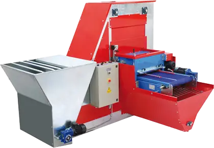 User-adjustable magazine and separation mechanism accommodate different tray sizes. Available in single-stack (manually loaded) or multi-stack (auto-loads via upper conveyor, returns trays via lower belt). All units adjustable to fit many tray types