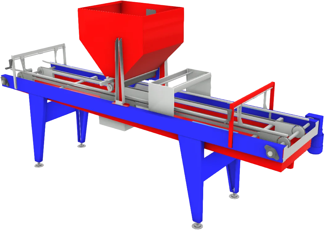 The KV-XL sets the standard for versatility and reliability. The soil hopper sits directly over the filling belt for even side-to-side filling while minimizing floor space.