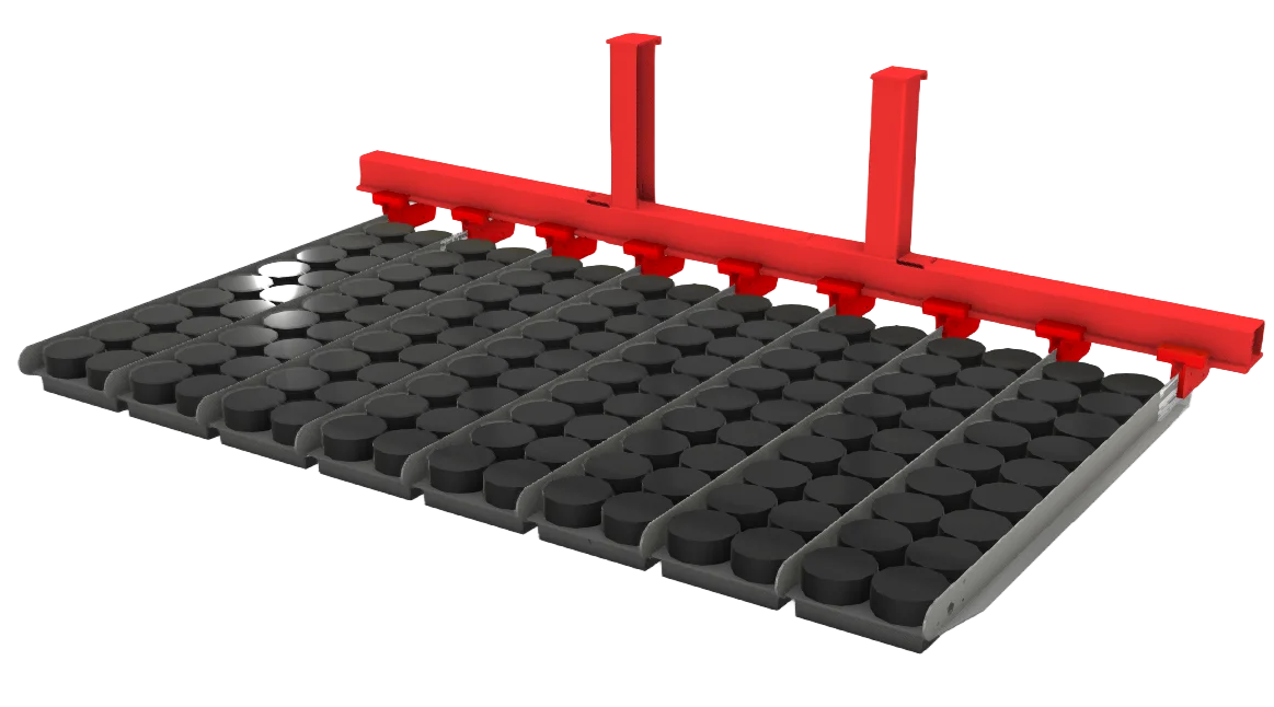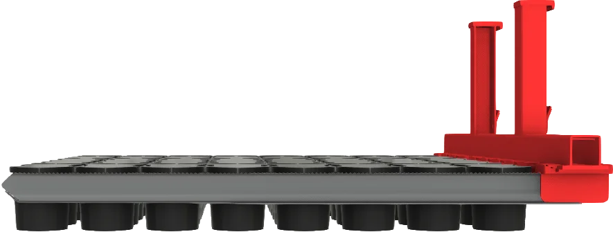 AdeptAg Pot Forks dramatically reduce labor for moving plants around the greenhouse/nursery. Move hundreds of pots at once; load/unload carts/wagons or set down in the growing area. Custom-designed based on pots, wagon size, and spacing. Rugged mast handles lifts over 2000 lbs. Adjustable tine brackets with laser-cut Y-shaped serrated edges secure pots. 2-part pressed tine design provides strength and aligns pots on pickup. Compatible with Prins Trike, Electro, Boxer, and traditional forklifts.