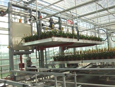 Set the schedule, turn off the lights, and your vehicles or overhead cranes position everything by morning. Patented space-saving train design integrates seamlessly into existing greenhouse systems. Continuous round-the-clock operation reduces labor costs and minimizes human error.