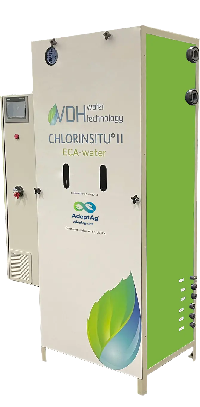 Maximize the value of your drain water while reducing fertilizer and water costs. AdeptAg designs custom recirculation systems—from simple closed-loop ebb and flood to complex farm-wide plans. Key components include collection systems, pumping, filtration, drain water storage, treatment and cleaned water reintroduction. Treatment options include ECA, UV and ozone. Filtration options include screen, sieve, self-actuated, and cloth filters. Meets environmental regulations and protects your crops.