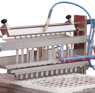 Works with most standard trays and seeds, naked and pelleted. Complete automatic dibbler operation included. Programmable for multiple seeds per cell. Comes with nozzle kit, first seeder bar, and matching dibbler. Tray samples and seed list required for purchase.
