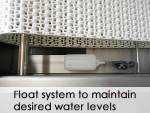 Fully adjustable width guides hold trays in position through the water