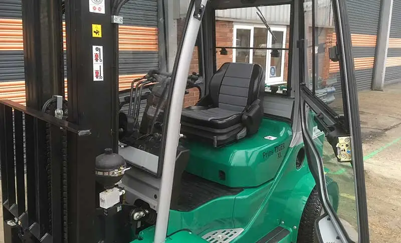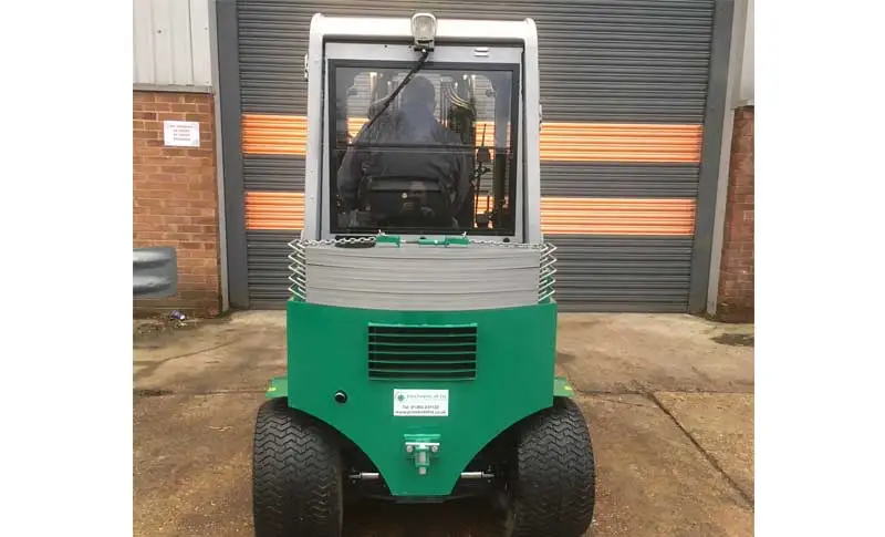 The Prins Tiger XL forklift delivers outstanding maneuverability and lifting capacity for nursery and greenhouse operations. Compact size navigates spaces conventional forklifts cannot reach. Available in 1000–1800 kg lifting configurations. Removable counterweights reduce ground indentation when full power isn't required. Kubota diesel or gas engine (36–38 kW) with torque converter transmission. Large tires with multiple profiles available. Ergonomic design reduces operator fatigue. Cab option.